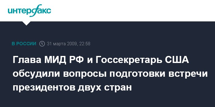 Москва. 31 марта. ИНТЕРФАКС - Встреча министра иностранных дел РФ Сергея Лаврова с Госсекретарем США Xиллари Клинтон состоялась во вторник "на полях" международной конференции по Афганистану в Гааге.