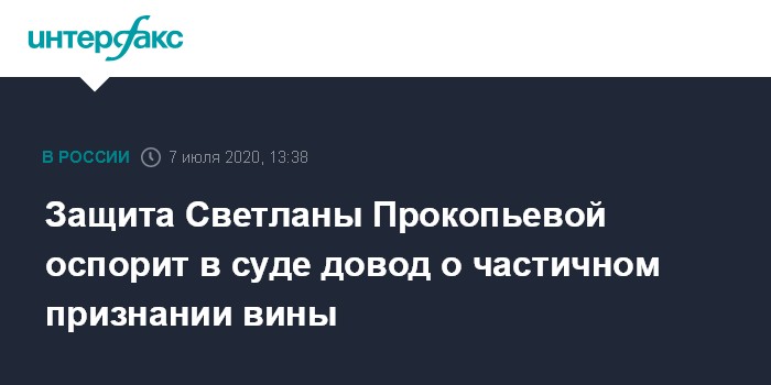 Москва. 7 июля. INTERFAX.RU - Защита псковской журналистки Светланы Прокопьевой оспорит довод суда о частичном признании вины по делу об оправдании терроризма. Как рассказал ее адвокат Виталий Черкасов, довод заключается в том, что Прокопьева признала за собой авторство текста, а суд посчитал это частичным признанием вины.