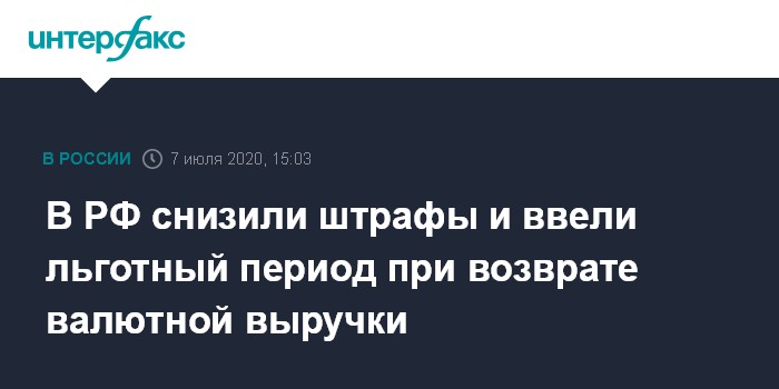 В РФ снизили штрафы и ввели льготный период при возврате валютной выручки