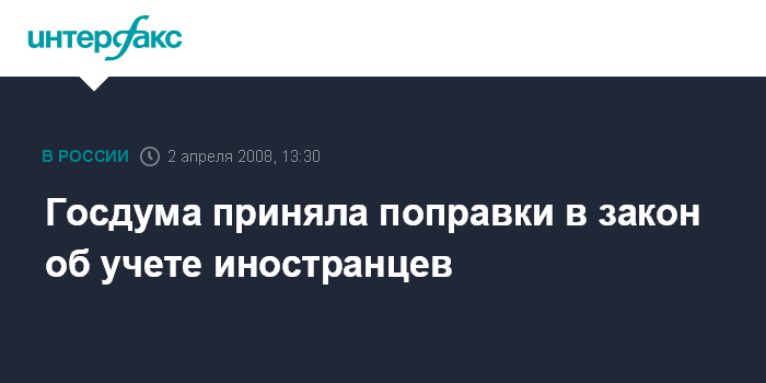 Москва. 2 апреля. ИНТЕРФАКС - Государственная дума приняла в первом чтении изменения и дополнения в действующий закон "О миграционном учете иностранных граждан и лиц без гражданства в РФ", ранее внесенные правительством страны.