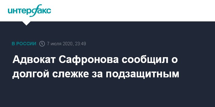 Москва. 7 июля. INTERFAX.RU - За советником главы "Роскосмоса" Иваном Сафроновым "долго следили", заявил его адвокат, руководитель правозащитного объединения "Команда 29" Иван Павлов.