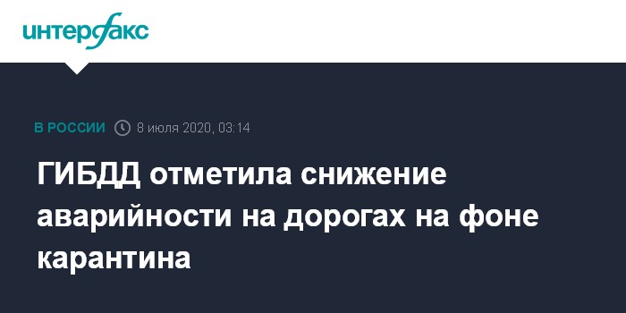 Москва. 8 июля. INTERFAX.RU - Вызванные эпидемиологической обстановкой ограничения граждан в передвижении положительно отразились на статистике дорожно-транспортных происшествий (ДТП), сообщил начальник Главного управления по обеспечению безопасности дорожного движения МВД РФ Михаил Черников.