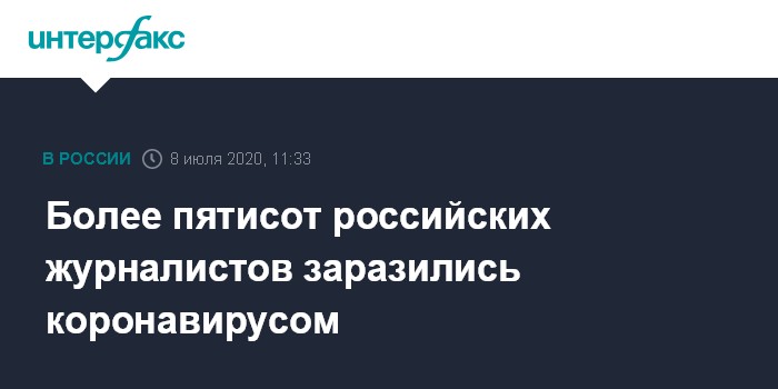 Москва. 8 июля. INTERFAX.RU - В России более пятисот сотрудников СМИ заразились коронавирусом, сообщил председатель Союза журналистов России Владимир Соловьев.