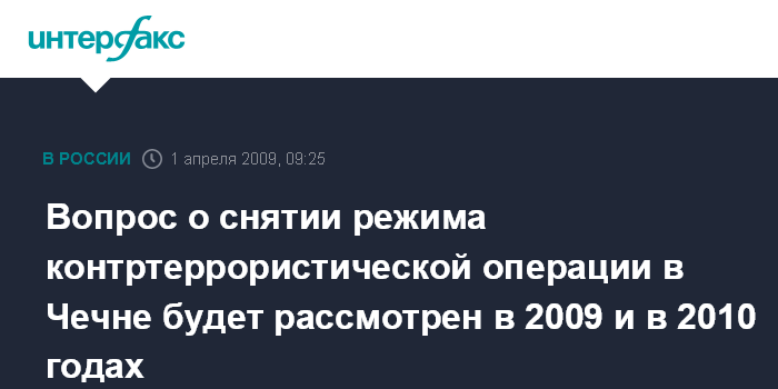 Вопрос о снятии режима контртеррористической операции в Чечне будет рассмотрен в 2009 и в 2010 годах
