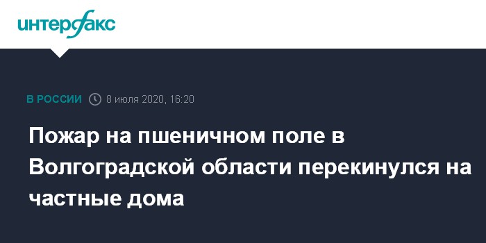 Москва. 8 июля. INTERFAX.RU - Пожар с пшеничного поля в Михайловском районе Волгоградской области перешел на жилые дома и хозяйственные постройки близлежащего поселка, сообщает пресс-служба ГУ МЧС РФ.