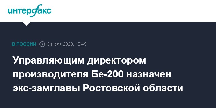 Управляющим директором производителя Бе-200 назначен экс-замглавы Ростовской области