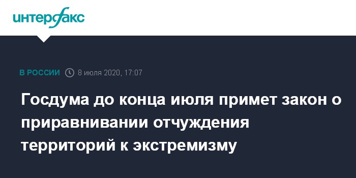 Госдума до конца июля примет закон о приравнивании отчуждения территорий к экстремизму