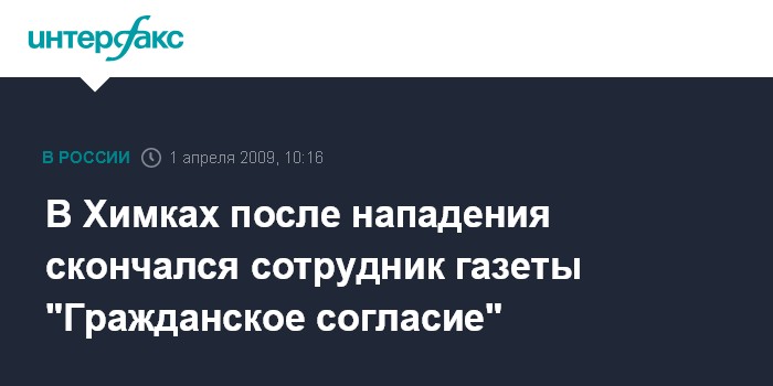 В Химках после нападения скончался сотрудник газеты "Гражданское согласие"