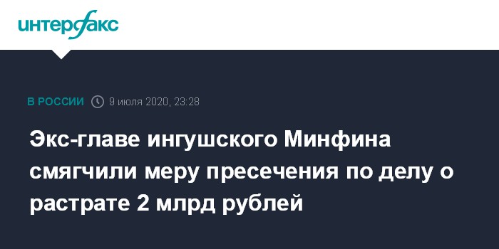 Экс-главе ингушского Минфина смягчили меру пресечения по делу о растрате 2 млрд рублей