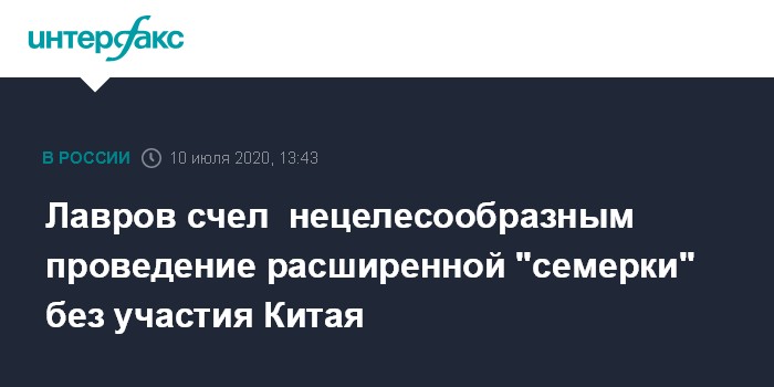 Москва. 10 июля. INTERFAX.RU - Проведение встречи расширенной "большой семерки" без участия Китая было бы нецелесообразно, заявил глава МИД РФ Сергей Лавров.