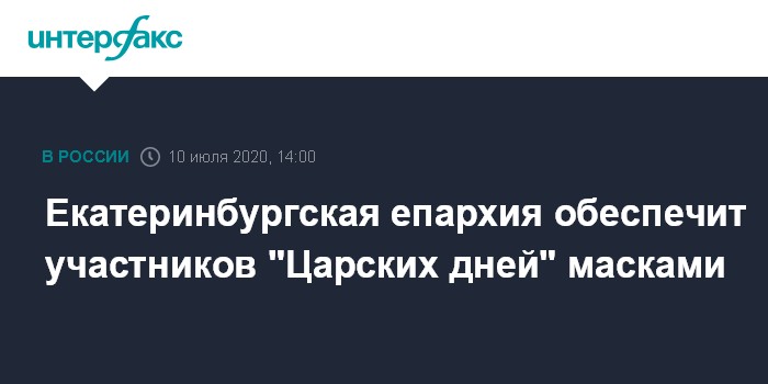 Екатеринбургская епархия обеспечит участников "Царских дней" масками