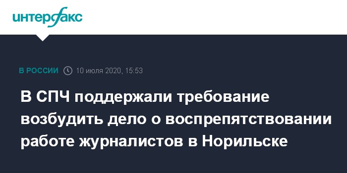 Москва. 10 июля. INTERFAX.RU - Комиссии Совета при президенте по правам человека по свободе информации и по экологическим правам поддержали требование возбудить уголовное дело из-за воспрепятствования законной деятельности журналистов "Новой газеты" в Норильске.