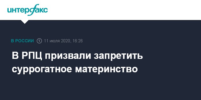Москва. 11 июля. INTERFAX.RU - Глава синодального Отдела внешних церковных связей митрополит Иларион считает, что в России следует запретить практику суррогатного материнства.