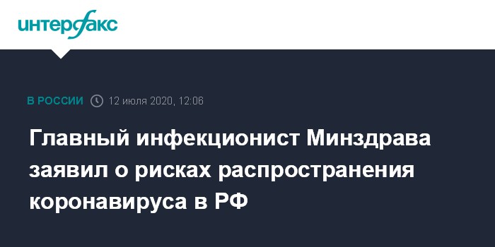 Главный инфекционист Минздрава заявил о рисках распространения коронавируса в РФ
