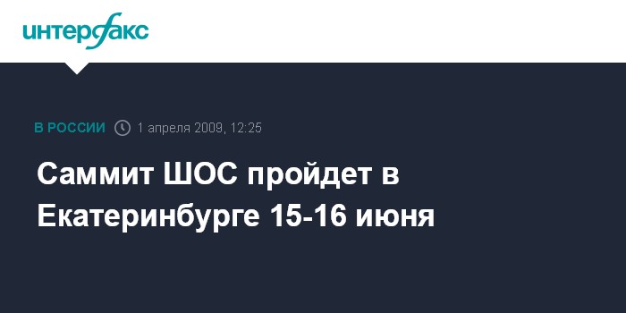 Саммит ШОС пройдет в Екатеринбурге 15-16 июня