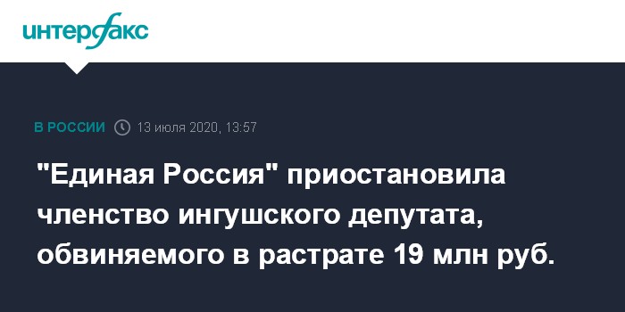 "Единая Россия" приостановила членство ингушского депутата, обвиняемого в растрате 19 млн руб.