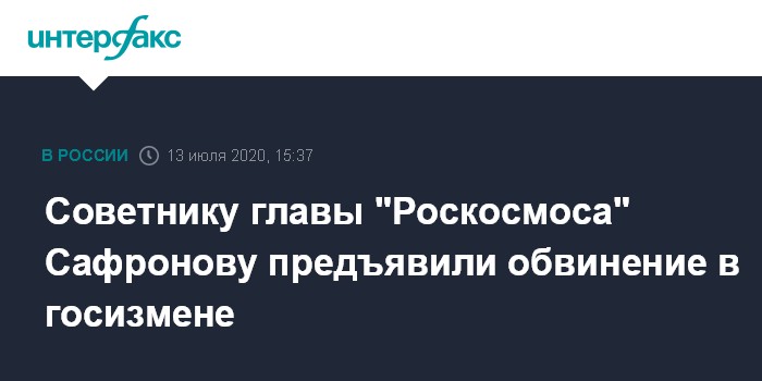Москва. 13 июля. INTERFAX.RU - Следствие предъявило обвинение в государственной измене советнику главы "Роскосмоса" Ивану Сафронову, сообщил "Интерфаксу" его адвокат, руководитель правозащитного объединения "Команда 29" Иван Павлов.