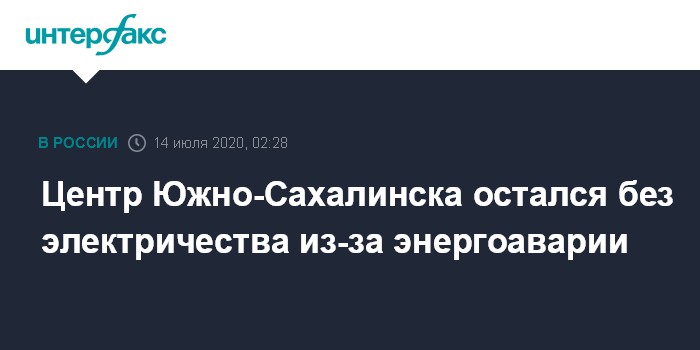 Москва. 14 июля. INTERFAX.RU - Энергоавария оставила без электричества 11 улиц центральной части Южно-Сахалинска, сообщили агентству "Интерфакс" в пресс-службе ПАО "Сахалинэнерго".