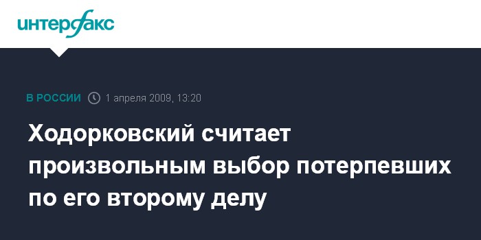 Москва. 1 апреля. INTERFAX.RU - Экс-глава НК "ЮКОС" Михаил Ходорковский назвал произвольным выбор потерпевших по второму уголовному делу в отношении него и бывшего главы МФО "МЕНАТЕП" Платона Лебедева, наводящий на "мысль о коррупционных мотивах". "В ходе заседания во вторник представители стороны обвинения продолжили занимать позицию, противоречащую их должностным обязанностям работников прокуратуры", - завил М.Ходорковский в Хамовническом суде Москвы на процессе по рассмотрению второго дела.
