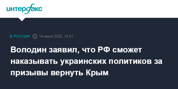 Володин заявил, что РФ сможет наказывать украинских политиков за призывы вернуть Крым