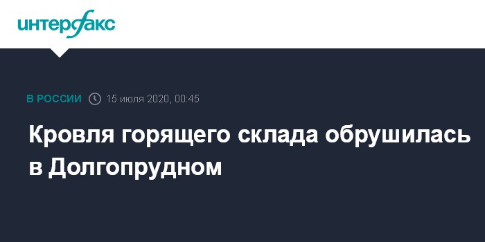 Москва. 15 июля. INTERFAX.RU - Кровля горящего обувного склада в Долгопрудном полностью обрушилась, сообщили "Интерфаксу" в МЧС России.