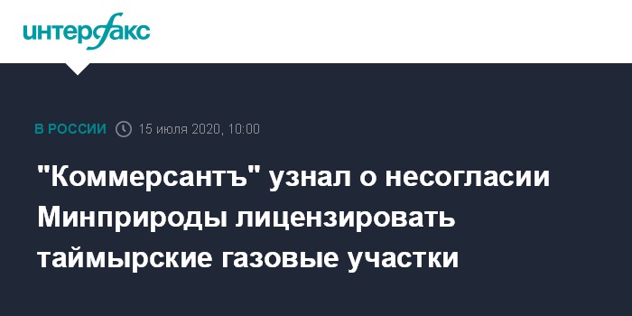 "Коммерсантъ" узнал о несогласии Минприроды лицензировать таймырские газовые участки