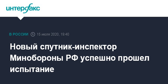 Москва. 15 июля. INTERFAX.RU - Российские военные провели испытания нового спутника-инспектора, который провёл проверку отечественного космического аппарата. Об этом сообщает департамент информации и массовых коммуникаций Минобороны России.