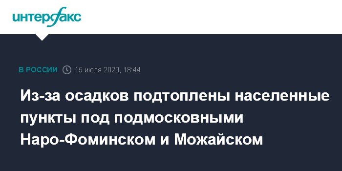 Москва. 15 июля. INTERFAX.RU - Более 350 человек отрезаны паводком в двух деревнях Наро-Фоминского округа Подмосковья из-за обильных осадков.