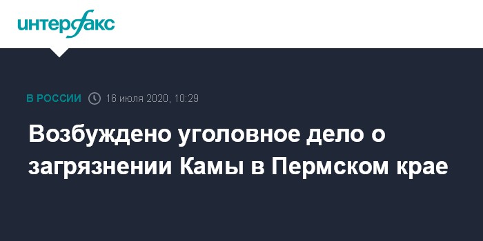 Москва. 16 июля. INTERFAX.RU - По факту загрязнения воды в Каме в Березниках возбуждено уголовное дело о нарушении правил обращения экологически опасных веществ и отходов (ч.1 ст.247 УК ), сообщила пресс-служба СКР.