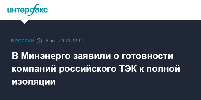В Минэнерго заявили о готовности компаний российского ТЭК к полной изоляции