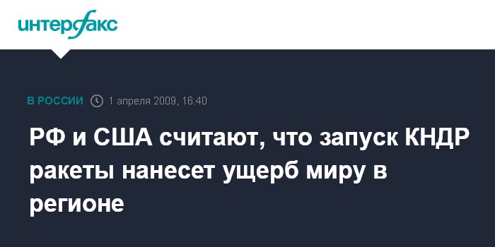 Лондон. 1 апреля. INTERFAX.RU - Россия и США обеспокоены возможным запуском КНДР своей баллистической ракеты.