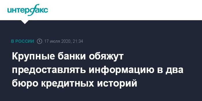 Крупные банки обяжут предоставлять информацию в два бюро кредитных историй