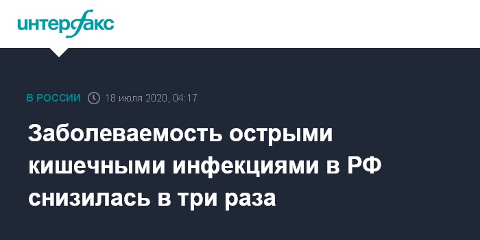 Москва. 18 июля. INTERFAX.RU - Роспотребнадзор зафиксировал значительное снижение заболеваемости острыми кишечными инфекциями в России в 2020 году.