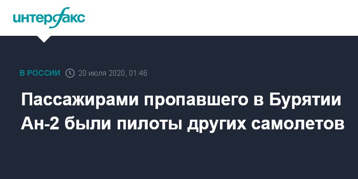 Москва. 20 июля. INTERFAX.RU - Четыре командира экипажей являлись пассажирами самолета Ан-2, который пропал в Бурятии, сообщили агентству "Интерфакс" в Сибирском авиационном поисково-спасательном центре.