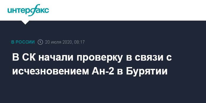 Москва. 20 июля. INTERFAX.RU - Следователи начали проверку в связи с исчезновением в Бурятии Ан-2, на борту которого было шесть человек. Об этом сообщили в Восточно-Сибирском следственном управлении СК на транспорте.
