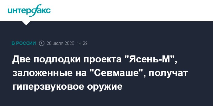 Москва. 20 июля. INTERFAX.RU - Две атомные подлодки проекта "Ясень-М", заложенные на северодвинском "Севмаше", будут оснащены гиперзвуковым оружием, сообщил генеральный директор завода Михаил Будниченко.