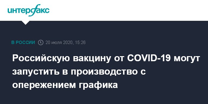 Москва. 20 июля. INTERFAX.RU - Работа над российской вакциной от COVID-19 идет по графику, есть надежды, что производство прививки начнется в августе раньше срока на 7-10 дней, сообщил ведущий специалист Научного центра эпидемиологии и микробиологии имени Гамалеи Федор Лисицын.