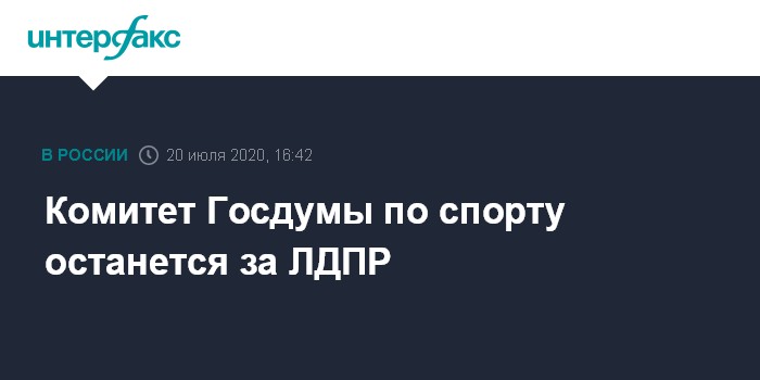 Москва. 20 июля. INTERFAX.RU - Комитет Госдумы по физкультуре, спорту, туризму и делам молодежи после назначения его председателя Михаила Дегтярева на должность врио губернатора Хабаровского края возглавит представитель фракции ЛДПР, заявил вице-спикер Госдумы от ЛДПР Игорь Лебедев.