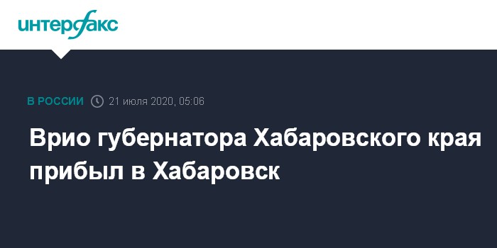 Врио губернатора Хабаровского края прибыл в Хабаровск