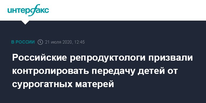 Москва. 21 июля. INTERFAX.RU - Российская ассоциация репродукции человека (РАРЧ) предложила создать механизм контроля за передачей детей от суррогатных матерей родителям после ареста нескольких врачей, которые вели беременность.