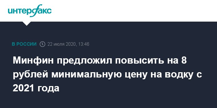 Минфин предложил повысить на 8 рублей минимальную цену на водку с 2021 года
