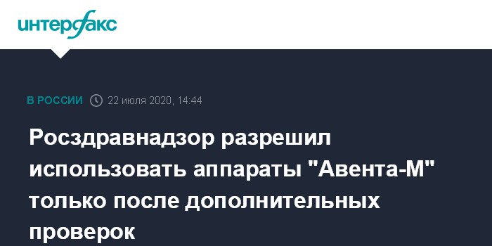 Росздравнадзор разрешил использовать аппараты "Авента-М" только после дополнительных проверок