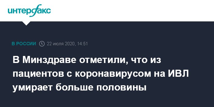 Москва. 22 июля. INTERFAX.RU - Почти половина пациентов с коронавирусом, попадающих в реанимации, погибает, а из оказывающихся на аппаратах искусственной вентиляции, умирает больше половины. Об этом заявил главный пульмонолог Минздрава России, профессор Сеченовского университета Сергей Авдеев.