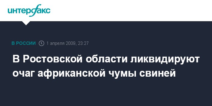 Ростов-на-Дону. 1 апреля. ИНТЕРФАКС-ЮГ - Режим чрезвычайной ситуации введен в селе Романовское Сальского района Ростовской области в связи с африканской чумой, приведшей к массовому падежу свиней, сообщили агентству "Интерфакс-Юг" в среду в ветеринарных службах района.