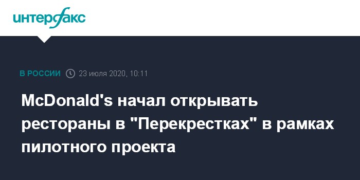McDonald's начал открывать рестораны в "Перекрестках" в рамках пилотного проекта