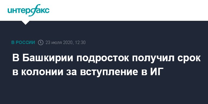 Москва. 23 июля. INTERFAX.RU - В Башкирии 18-летний житель Межгорья приговорен к 5,5 года колонии общего режима за участие в "Исламском государстве" (ИГ, запрещено в России), сообщило региональное управление СКР. Он вину не признал.