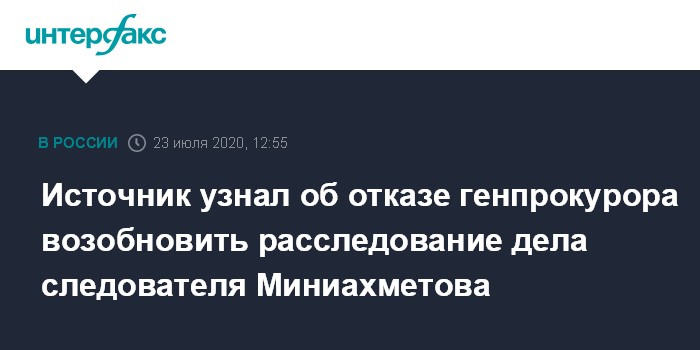 Источник узнал об отказе генпрокурора возобновить расследование дела следователя Миниахметова
