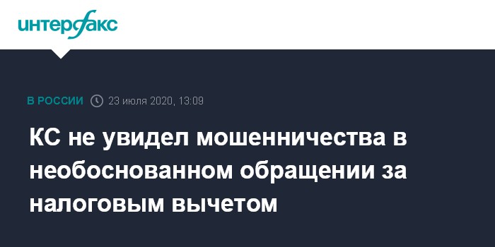 Москва. 22 июля. INTERFAX.RU - Конституционный суд РФ разъяснил, что необоснованное обращение за налоговым вычетом необязательно свидетельствует о намерении совершить мошенничество.