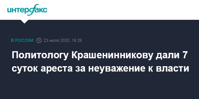 Москва. 23 июля. INTERFAX.RU - Cуд в Екатеринбурге в четверг назначил наказание в виде ареста политологу Федору Крашенинникову за неуважительный комментарий о судьях Конституционного суда РФ в телеграм-канале.