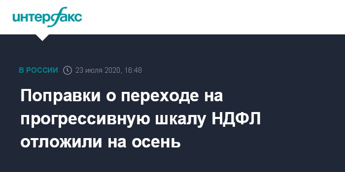 Москва. 23 июля. INTERFAX.RU - Предельный срок принятия закона о введении прогрессии в уплате налога на доходы физлиц и о возможности платить фиксированный НДФЛ с зарубежных доходов без декларирования перенесли с 24 июля на 1 ноября, узнал источник "Интерфакса".